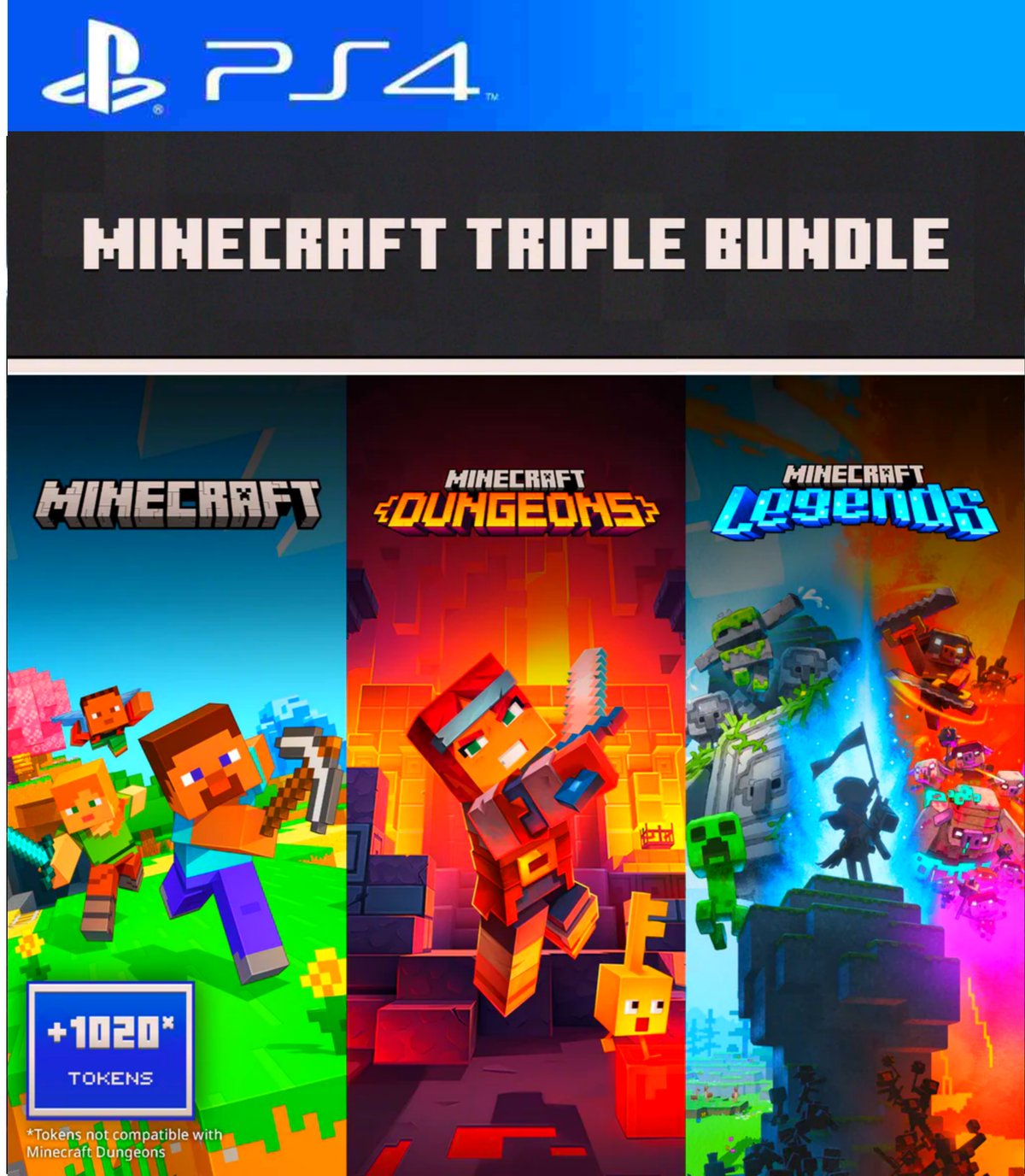 Además, incluye 1020 Tokens que podés usar para comprar contenido dentro de Minecraft y Minecraft Legends (los tokens no aplican para Minecraft Dungeons).
